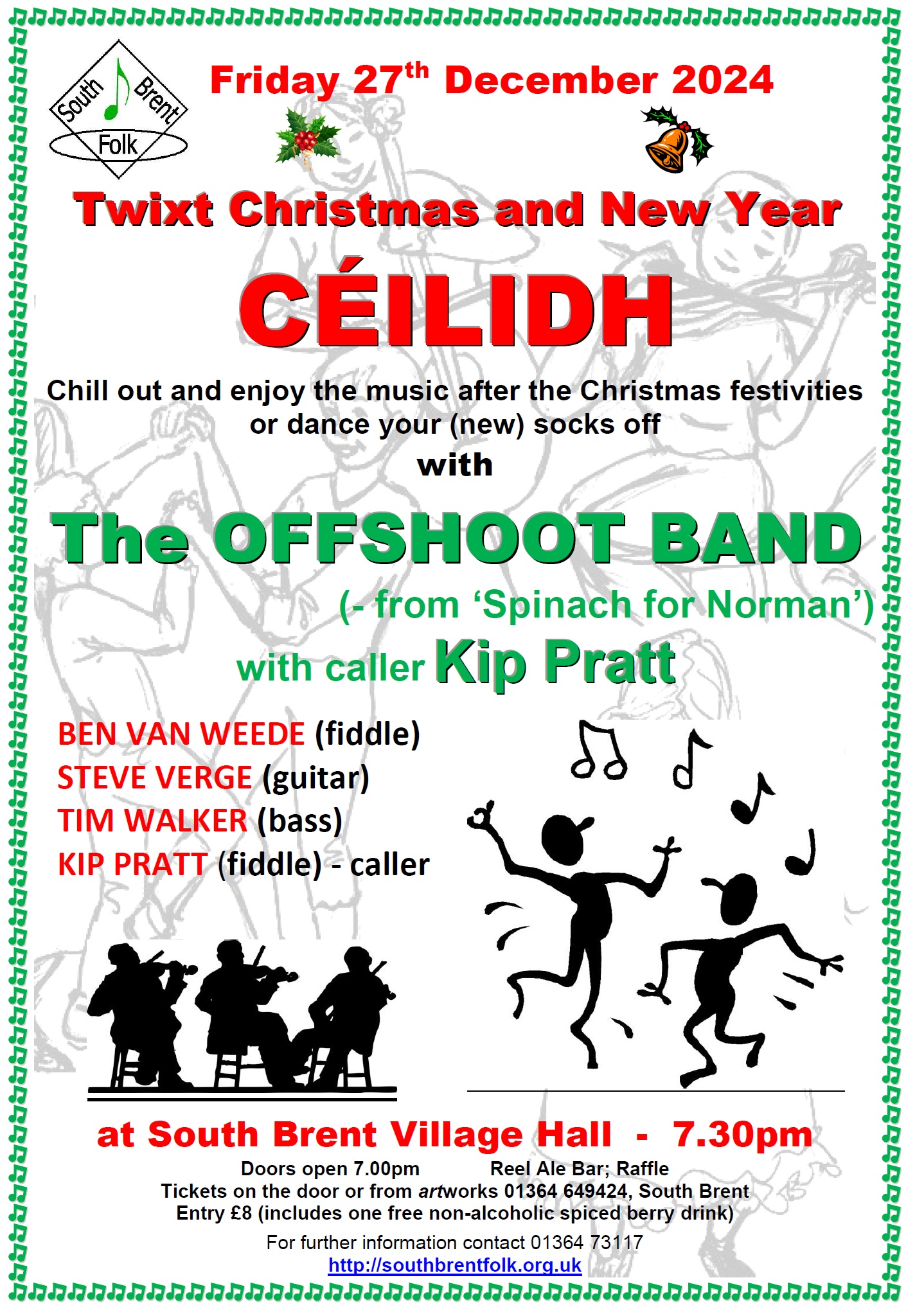 Friday 27 December 2004: ’Twixt Christmas and New Year' Céilidh, organised by South Brent Folk in South Brent Village Hall at 7.30pm (doors open 7pm).